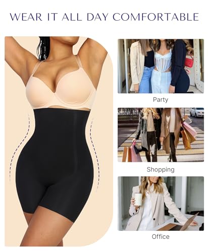 • FLATTEN YOUR TUMMY: Our shapewear shorts offer 360-degree compression stretch fabric that smooths out body fat for a well-contoured look. The double-layered front and back enhance the tummy control effect, helping you achieve a slimmer, tighter midsection. The comfortable design allows you to move freely while shaping your waistline. Get ready to flaunt your curves with confidence!