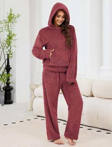• Features: This lounge wear for women comes with front pockets, crew neck, long sleeves, drawstring waistband. fuzzy fleece hoodie with wide leg pants sets. Two-piece design make this fall pj set for women more versatile to match different tops or bottoms seperatly in your need.