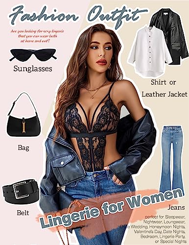 • One piece lingerie, bodysuit lingerie, teddy lingerie for women, bridal lingerie, lingerie underwear, lace teddy lingerie for women, lingerie rompers for women, deep v lace bodysuit babydoll teddy underwear, corset lingerie