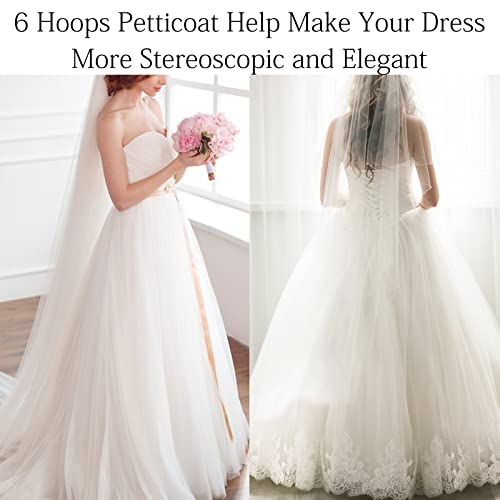 Women’s Petticoat 6 hoop Skirt Crinoline Underskirt Full Floor Length Petticoat Slips for Wedding Dress Ball Gown 6