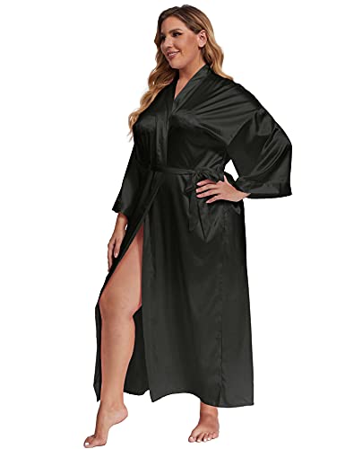 Women's Plus Size Long Satin Robes Plus Size Long Silk Robes Kimonos Sleepwear Dressing Gown 5