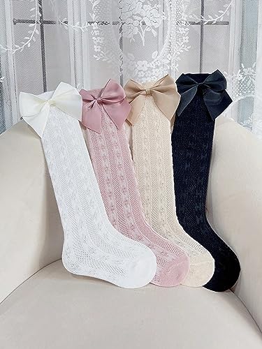 • Design: Ruffle cuff, bow decor, over the calf, knee high, cable knit, cute casual style, 4 pairs set