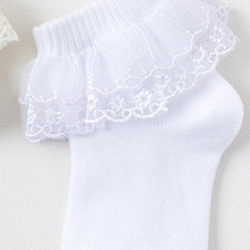 Pack of 3 Pair Girls Frilly Ankle Socks Comfortable Cotton Socks with Delicate Lace Edging for Parties and School 3