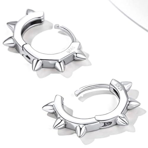 • SPIKE EARRINGS FOR WOMEN MEN: White gold huggie earrings of good quality pure 925 sterling silver. Manly style, 100% hypoallergenic and long lasting so you can wear your earrings without itchiness, it's safe for use on even the most sensitive skin! These punk street style small hoop earrings can bring good luck to the wearer and make the wearer more attractive.