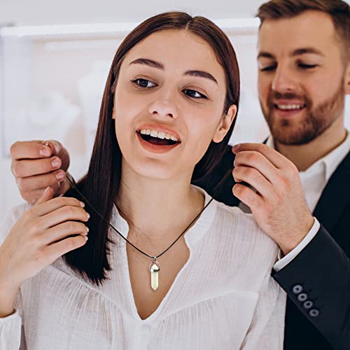 • SIZE & PACKAGE -- Each healing point pendant measures about 32 x 8 mm/1.3 x 0.3 inches. Package includes 10 pieces fluorescent crystal quartz stones pendants and 10 pieces black leather chains.