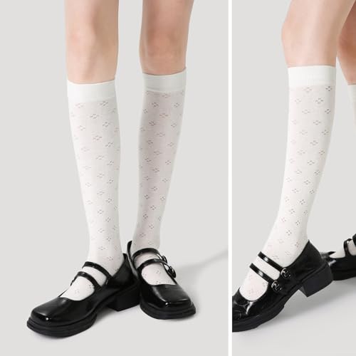 Women's Retro Casual Floral Hollow Knee High Socks Vintage Chic Calf Socks with Breathable Cutout Design 6