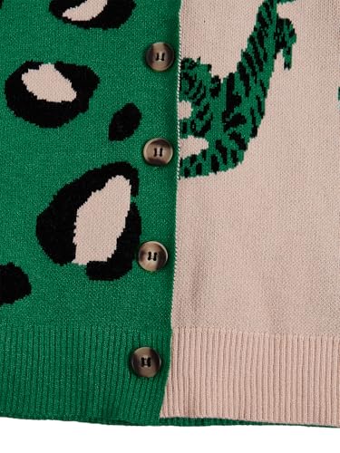 WDIRARA Girl's Leopard Animal Print Button Down Cardigan Sweater Color Block V Neck Knit Outerwear 6