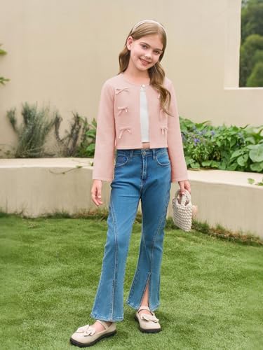 Haloumoning Girls Cropped Cardigan Sweater Kids Cute Bow Long Sleeve Knitted Sweaters Tops 5-14 Years 5