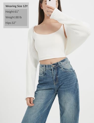 EXARUS Girls Open Front Cropped Half Cardigan Knit Ribbed Teen Bolero Shrug Batwing Long Sleeve Sweater Casual 8-14Y 2