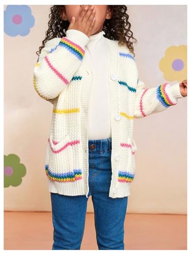 More information about GORGLITTER Girl's Rainbow Striped Button Up Cardigan V Neck Long Sleeve Cute Knit Fall Sweater Tops