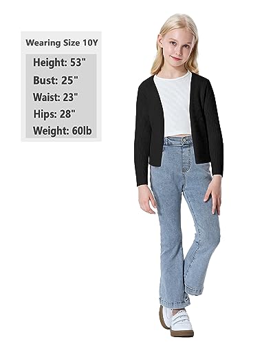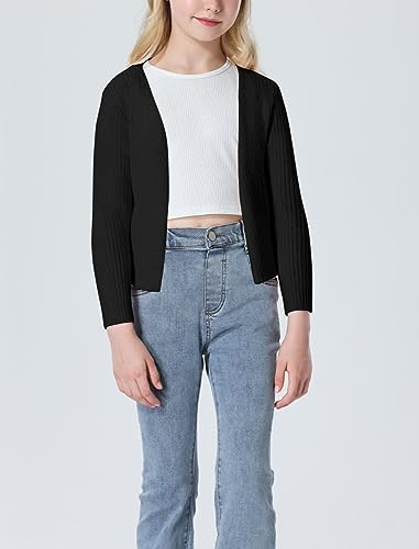Mebius Girls Long Sleeve Cropped Cardigan Sweater Kids Ribbed Knit V Neck Tie Front Bolero Shrug Top School Casual 6
