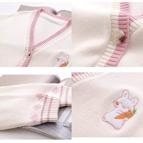 • Adorable Kawaii bunny embroidery adds a playful touch to this cozy cardigan.
