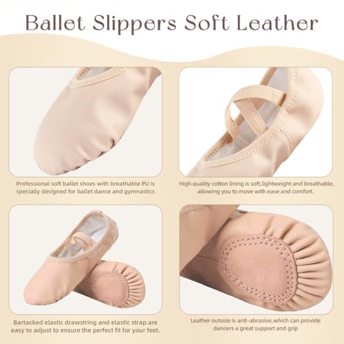 Ballet Shoes for Girls Ballet Dance Slippers Soft PU Dance Shoes for Toddler/Little Kid/Big Kid 4