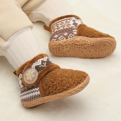 • WARM/SLIP RESISTANT:Thick soles are warmer than sock shoes.Babies don't feel cold when walking on icy floors.These booties for babies and toddlers feature a non-slip textured outsole to prevent slips and falls on hardwood floors and smooth surfaces.They make the baby love to wear shoes more