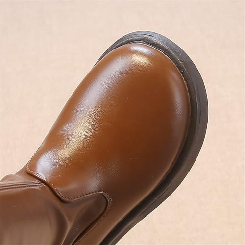 Boots for Girls Zipper PU Leather Riding Boots Fashion Mid Calf Waterproof Winter Warm Fashion Snow Boot for Kids 6