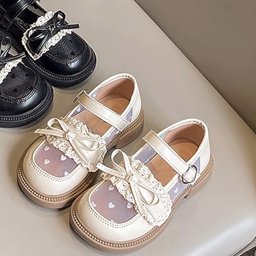 Girls Mary Jane Princess Dress Loafer Shoes Mesh Bowknot Ruffle Lace Shoes Adjustable Strap Flat Breathable Sandals 6