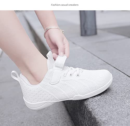 Girls White Cheerleading Shoes Youth Sneakers Breathable Knit Athletic Sport Training Tennis Competition Kids Walking Running Shoes 5