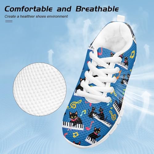 Yzaoxia Black Cat Shoes for Girls Size 1 Piano Note Kids Running Shoes Girls' Sneakers Mesh Walking Sneaker Lightweight Trainers Casual Footwear for School Blue 4