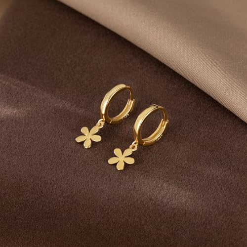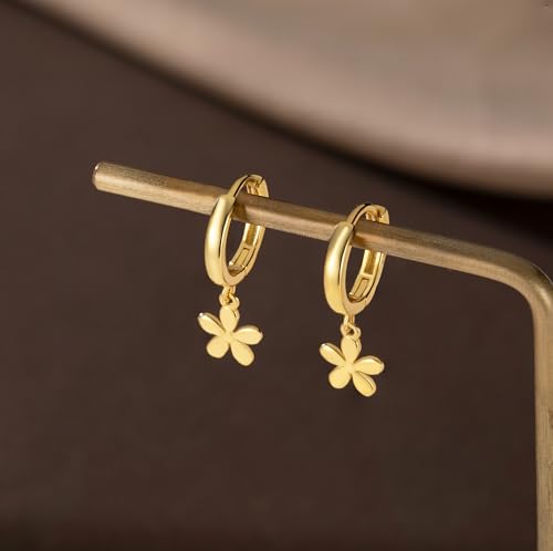 HOT ! Reffeer Solid 925 Sterling Silver Tiny Daisy Dangle Hoop Earrings for Women Teen Girls Flower Huggie Earrings Small Hoop