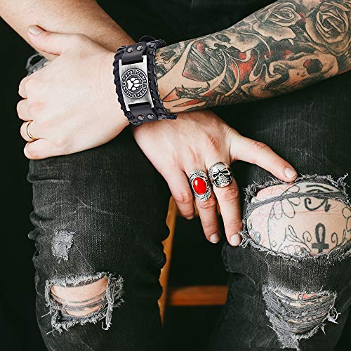 • 🐻🐻TURTLEDOVE DESIGN - The size of this Viking bracelet is 11.5*1.6 inch. This medieval leather bracelet is a perfect combination of metalwork and leather rope chain of a Celtic knot design. The metalwork is engraved Nordic amulet, which is Gothic jewelry style. This Viking bracelet is pretty decent, and well show the Viking jewelry feeling