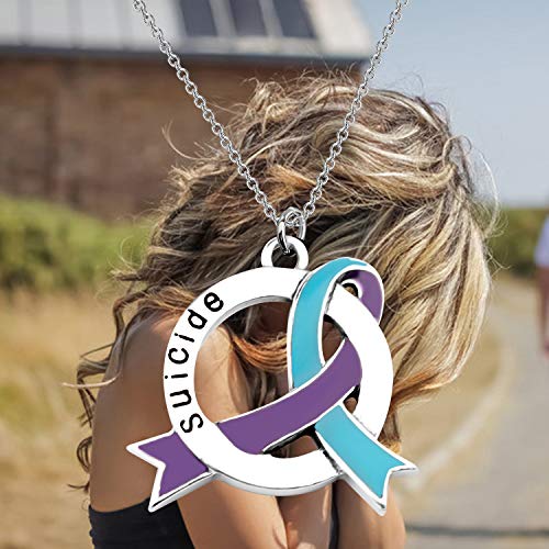 CENWA Suicide Awareness Jewelry Suicide Awareness Teal & Purple Ribbon Necklace/Zipper Pull Suicide Aware Gift 5