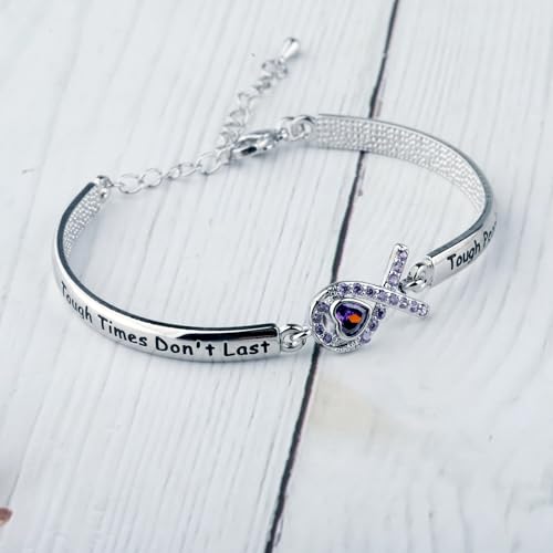 CENWA Purple Ribbon Bracelet Tough Times Don’t Last Tough People Do Bracelet Awareness Gift Cancer Support Jewelry 5