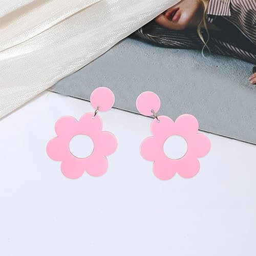 Bohemian 60s 70s Acrylic Flower Daisy Earrings for Women Trendy Resin Hawaii Colorful Floral Daisy Drop Earrings Statement Jewelry Gifts 5
