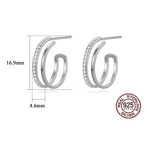 HOT ! 925 Sterling Silver 18K Gold Plated Faux Double Hoop Hidden Stud Earrings with Cubic Zirconia, Nickle Free Hypoallergenic for Sensitive Skin