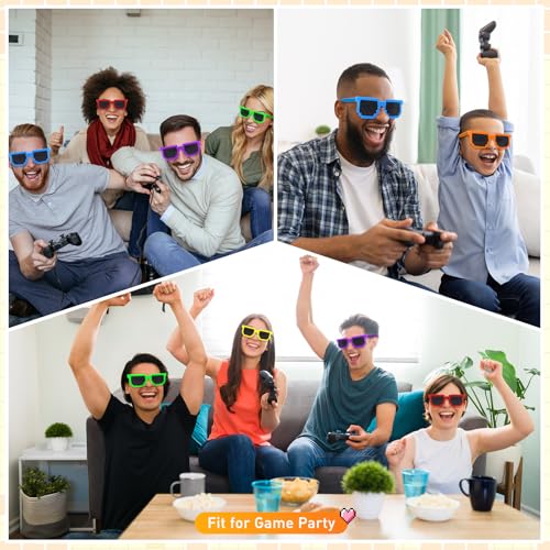 24 Halloween Pixelated Sunglasses for Kids and Adults Birthday Party Decoration Neon Multicolor Sunglasses for Game 4