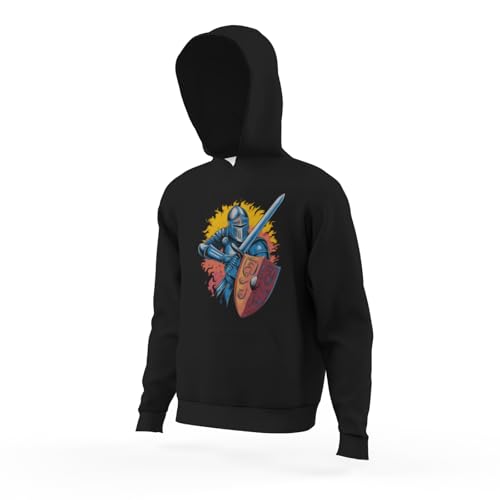 HOT ! Kids Retro Medieval Knight Armor Sword Shield Vintage Boys Girls Lightweight Kangaroo Pocket Fleece Hoodies