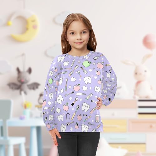 JUNZAN Cute Teeth and Objects Dental Care Purple Little Girls Pullover Hoodie Long Sleeve Sweatshirt With Hoodie Sports 4T 4