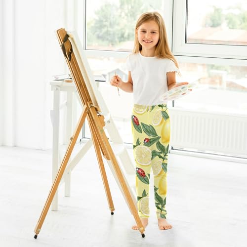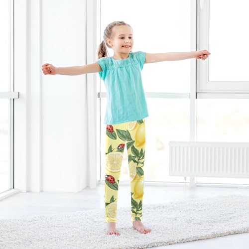 Wusikd Lemon Ladybug Girls' Leggings Toddler Doodles Yellow Kids Yoga Pants Dance Active Tights 4T 4