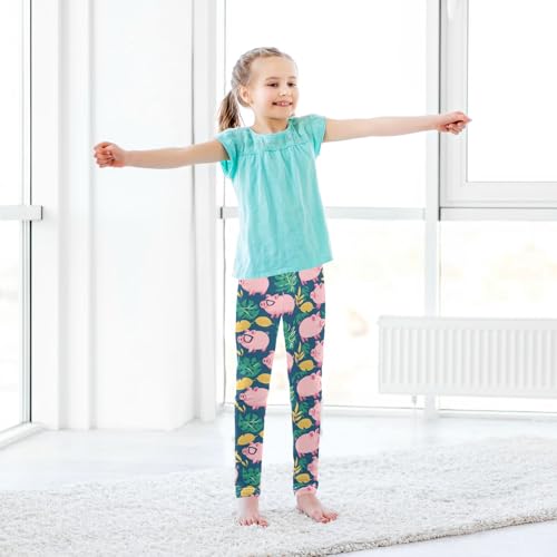 Pink Cartoon Pigs Girls' Leggings Toddler Doodles Colorful Green Leaves Kids Yoga Pants Dance Active Tights 4T 7