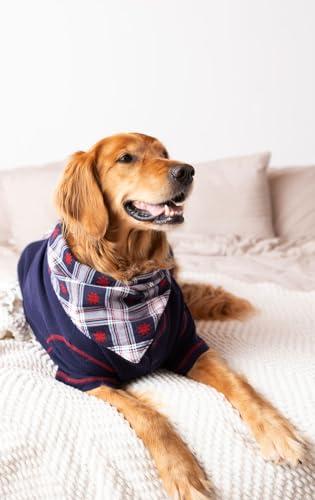 • Classic Design – Classic plaid gets a festive update in this matching pajama set for the whole family; Blue and white plaid pants are highlighted with red snowflakes that pair perfectly with a blue Henley top with red trim