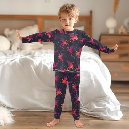 ALAZA Gradient Dinosaur Black Pajamas Long Sleeve Sleepwear 2-Piece Pajama Set 5