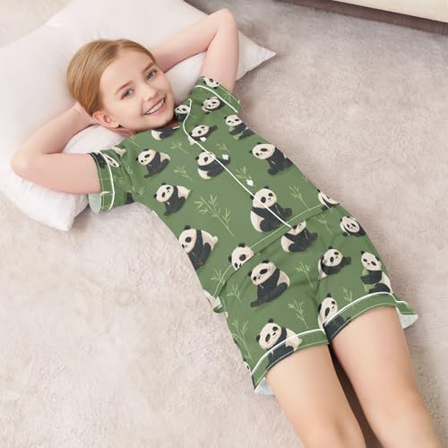 Panda Leaf Green Pajamas Set Soft Pjs Sets 2 Piece Short Sleeve Sleepwear Casual Loungewear 6
