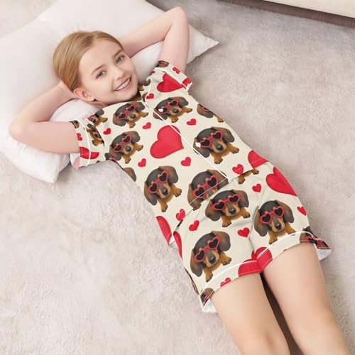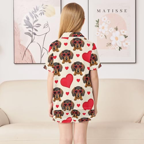 Dachshund Love Pattern Pajamas Set Summer Button Down Sleepwear Pjs Sets Comfy Loungewear 4