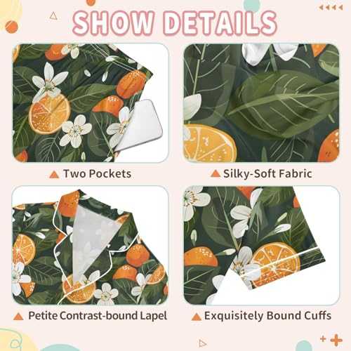 ALAZA Floral Orange Fruit Satin Pajamas Set Short Sleeve Button Down Sleepwear Summer Pjs 2 Piece 4