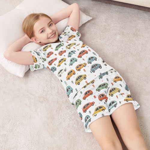 ALAZA Cartoon Car Tree Leaf Pajamas Satin Pajama Set Short Sleeve Button Down Sleepwear 3