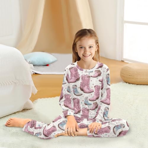 Cowgirl Boots with Stars Soft Pajama Set for All Seasons,Breathable Pjs Long Sleeve Sleepwear,Comfy Loungewear 2 Piece Underwear Set 4T 7