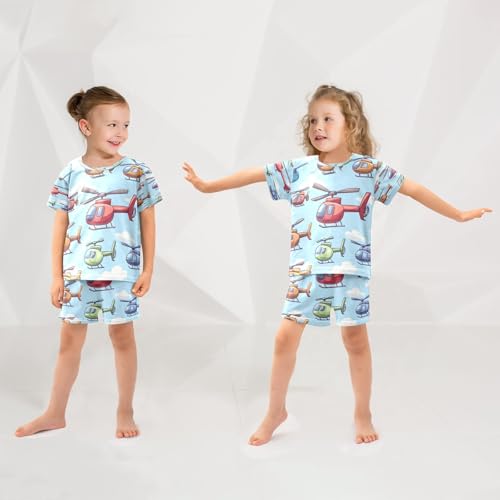 Pajama Sets Short Sleeve Helicopter Pattern Sky Background Soft Cotton Summer Sleepwear 2 Piece PJS Size 5-14T 1