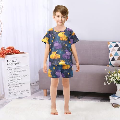 Pajama Short Sets Starry Hippo Pattern Print Soft Cotton Summer Sleepwear 2 Piece PJS Size 5-14T 6