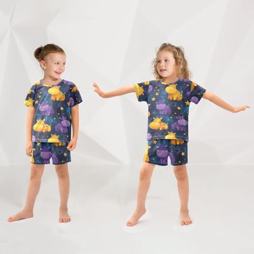 Pajama Short Sets Starry Hippo Pattern Print Soft Cotton Summer Sleepwear 2 Piece PJS Size 5-14T 5