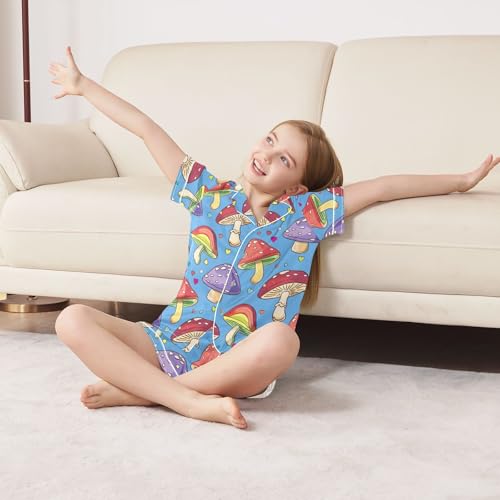 ALAZA Color Heart Mushroom Satin Pajamas Set Short Sleeve Button Down Sleepwear Summer Pjs 2 Piece 7