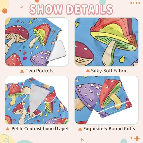 ALAZA Color Heart Mushroom Satin Pajamas Set Short Sleeve Button Down Sleepwear Summer Pjs 2 Piece 6