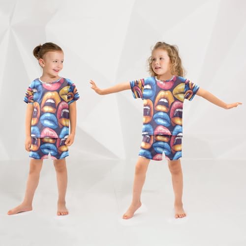 Pajama Sets Short Sleeve Colorful Lips Art Pattern Soft Cotton Summer Sleepwear 2 Piece PJS Size 5-14T 6