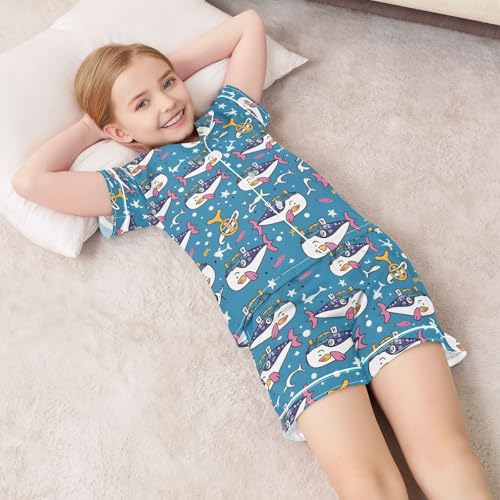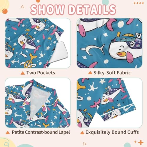 ALAZA Cute Sailor Whale Blue Pajamas Satin Pajama Set Short Sleeve Button Down Sleepwear 7