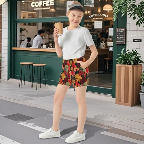 Girls Athletic Lounge Shorts Colorful Autumn Forest Red Tree Print Comfy Pajama Sleepwear for Teens Kids, X-Small 4