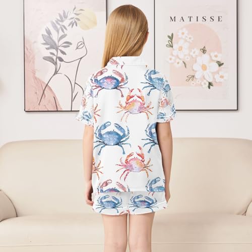 senya Colors Crabs A Satin Summer Pajama Sets Silk Short Sleeve Button Down Sleepwear 2