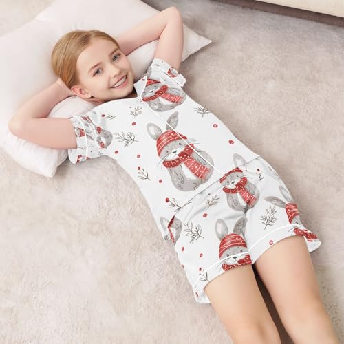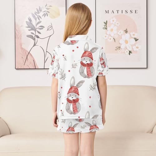 senya Cute Rabbit with Red Hats Satin Summer Pajama Sets Silk Short Sleeve Button Down Sleepwear 1